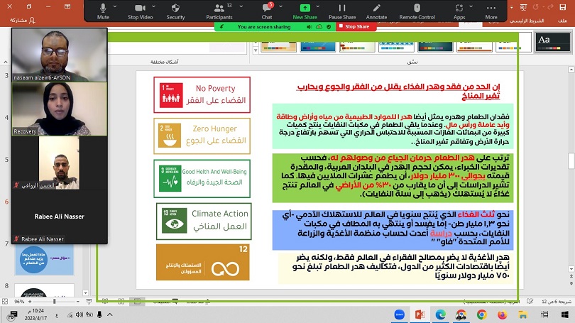 منصة RECOVERY وشبكة AYSDN تنظمان جلسة توعوية حول مشكلة هدر الطعام