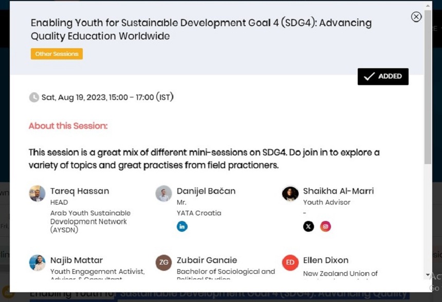 وقد جمع هذا الحدث العالمي، ولا يزال، بين القادة ذوي الرؤى وصانعي التغيير، والشباب من أكثر من 25 دولة لقيادة التغيير الإيجابي ومعالجة التحديات العالمية الملحة في الفترة من 15 إلى 20 أغسطس، مع أكثر من 200 جلسة ومناقشات.
