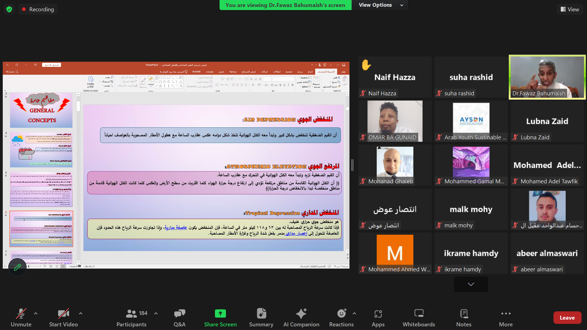 Dr. Bahmeesh also reviewed major global climate disasters, including Hurricane Katrina, and highlighted regional threats such as Aden, Yemen, which ranks among the top six cities globally at risk of submersion due to rising sea levels.