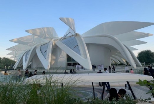 the Emirati Pavilion shows the transformation that the Emirates has witnessed over the past years and explains the concept of the “city of the future”, as more than 50% of the world’s population lives in cities and this number continues to increase. The vision for the city of the future will take into account its livability, resilience and sustainability. In this city, buildings, landscapes, and environments adapt to meet our needs to ensure everyone’s happiness and satisfaction. The city of the future is designed to empower us to shape our future and live on a sustainable planet.