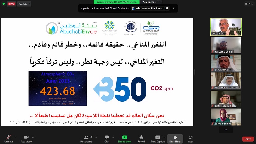 AYSDN participated in the Arab Scientific Forum in Support of the United Nations Conference on Climate Change COP28, which was organized by the Regional Network for Social Responsibility in cooperation with the National Network of the United Nations Global Compact in the Kingdom of Morocco on Thursday 05/08/2023, via the Zoom application, where it held the title,